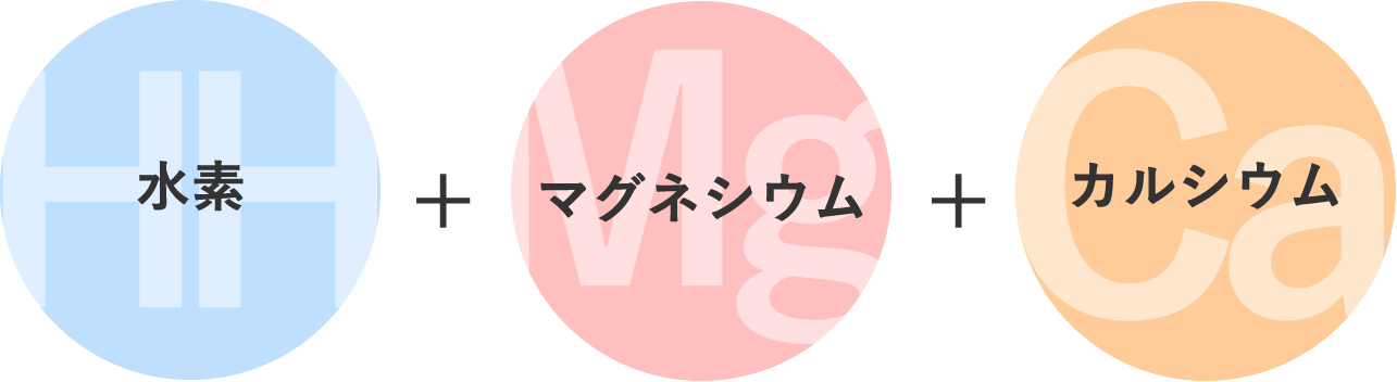 私達がお届けする水素の運び役はマグネシウムです。 マグネシウムは「ミネラルの王様」とも呼ばれる人体には必須のミネラル成分ですが、水素を7.6%(w/w)と 最も多く吸蔵する事が可能な物質としても知られております。 マグネシウムに吸蔵された大量の水素は、常温・常圧で放置されても逃げ出すことなく、 安定物質としてあなたへ届けられます。